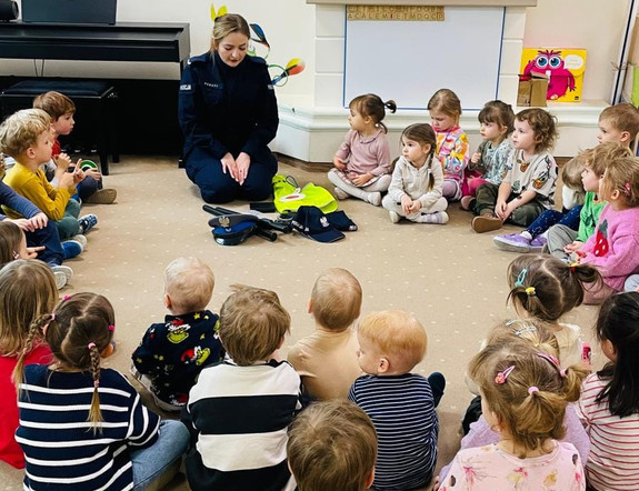Policjantka zajmująca się profilaktyką społeczną odwiedziła maluchy w przedszkolu żeby porozmawiać z nimi o bezpieczeństwie. W trakcie zajęć omówiła zasady bezpieczeństwa oraz zaprezentowała dzieciom wyposażenie do codziennej służby policjanta.