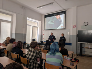 Podczas zajęć z uczniami szkół średnich staramy się przybliżyć specyfikę każdego z wydziałów. Wczoraj policjant z Wydziału Patrolowo-Interwencyjnego ochockiej komendy dokładnie omówił jak wygląda jego codzienna służba.