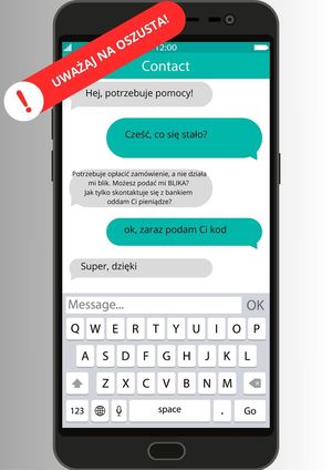 Na komunikator wpada wiadomość „ Cześć, potrzebuje Twojej pomocy! Opłacisz mi zamówienie, nie działa mi BLIK? Oddam Ci pieniądze, jak tylko skontaktuje się z bankiem”. Wszystko wygląda tak jakby pisał do Ciebie Twój znajomy. W zaufaniu podajesz kod BLIK i tracisz swoje pieniądze. Nie daj się nabrać i zanim pomożesz bliskiej osobie, skontaktuj się z nią.