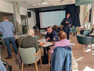 Na zakończenie spotkania wspólnie z przedstawicielką Delegatury Stołecznego Centrum Bezpieczeństwa w dzielnicy Ochota, przekazali seniorom poradniki „Seniorze Babciu, Dziadku nie daj się oszukać. Bądź bezpieczny!”, "koperty życia", poradniki „Seniorze, Babciu, Dziadku nie daj się oszukać. Bądź Bezpieczny!”, odblaski oraz materiały ostrzegające przed działalnością oszustów.