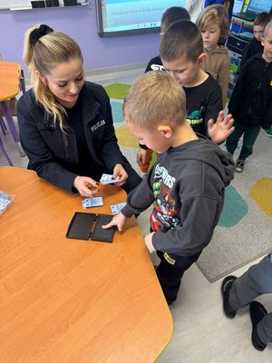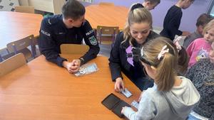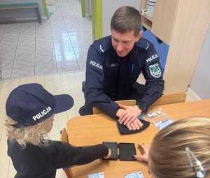 Podczas spotkania dzieci miały także okazję do wcielenia się w rolę prawdziwego policjanta- wykonały pamiątkowe odciski palców co sprawiło im bardzo dużo radości. Był to także moment, w którym funkcjonariusze opowiedzieli o swojej codziennej pracy, wyjaśnili jak wygląda ich służba i jakie zadania wykonują na co dzień.