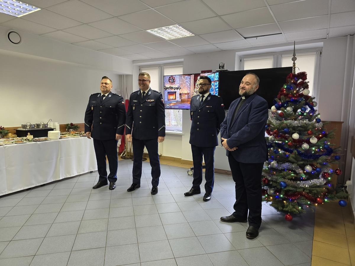O prawdziwie świąteczny nastrój zadbał zaproszony ks. kanonik dr Michał Turkowski który przeprowadził krótką modlitwę. Otrzymane życzenia były pełne ciepłych i serdecznych słów na temat policyjnej służby i zrozumienia dla ważnej pracy społecznej jaką na co dzień realizują policjanci.