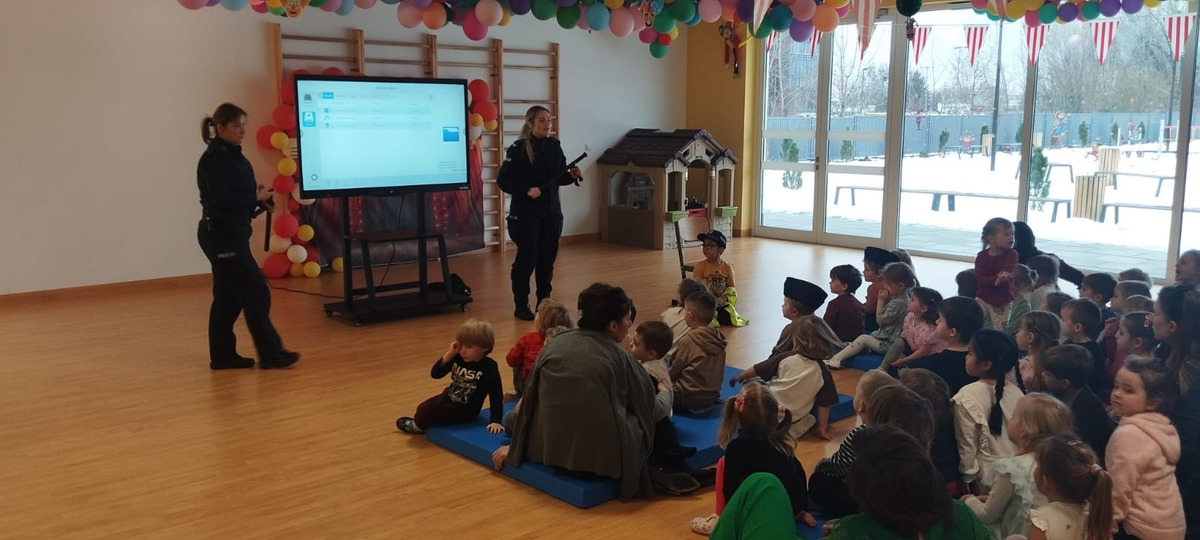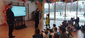 Profilaktyczka wspólnie z dzielnicowymi przeprowadzili zajęcia profilaktyczne dla dzieci w przedszkolu, których głównym tematem było szeroko pojęte bezpieczeństwo.