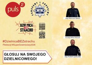 Zapraszamy do udziału w konkursie #DzielnicaBEZstrachu i wskazanie swojego ulubionego dzielnicowego. Wejdź i głosuj na stronie internetowej #DzielnicaBEZstrachu.