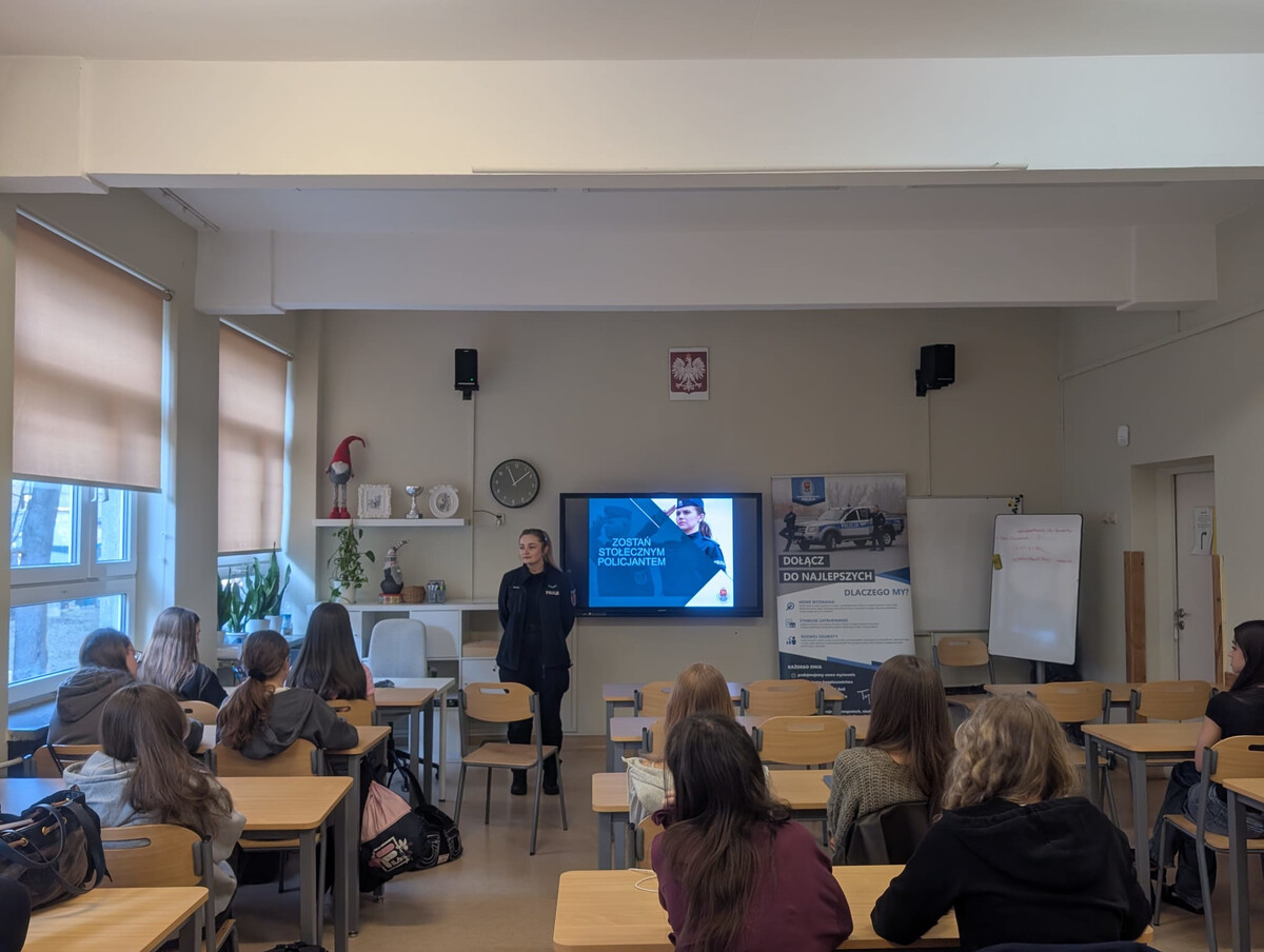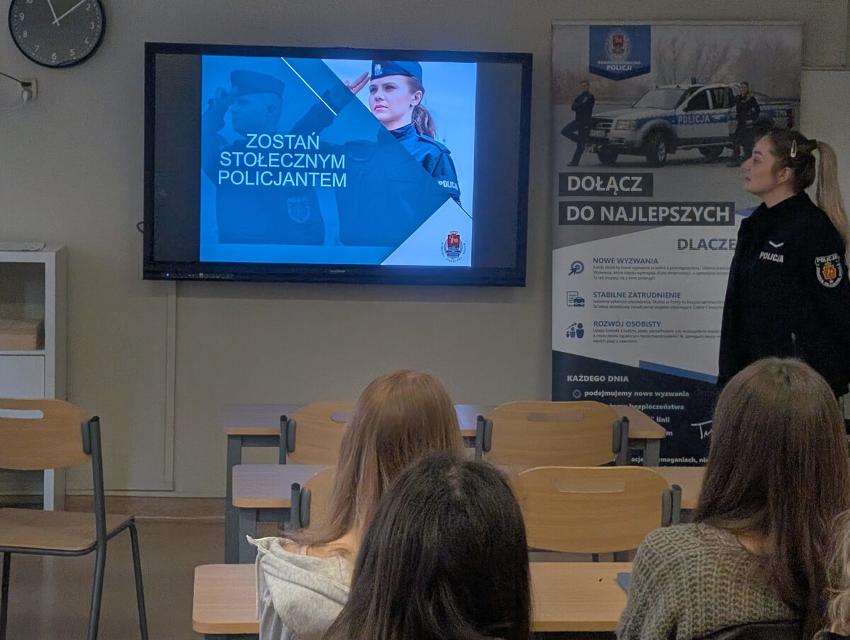 Policjanci z Komendy Rejonowej Policji Warszawa III przeprowadzili spotkanie w Liceum CLX przy ul. Siemieńskiego podczas którego promowali zawód policjanta i zachęcali do wstąpienia w nasze szeregi. W trakcie spotkania szczegółowo omówiono również proces rekrutacji do Policji – od złożenia dokumentów, przez kolejne etapy postępowania kwalifikacyjnego, aż po szkolenie przygotowujące do służby. Uczniowie mogli zadawać pytania i dowiedzieć się, jakie wymagania należy spełnić, aby w przyszłości dołączyć do policyjnej formacji.