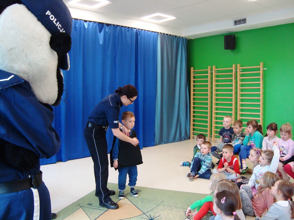 Podczas spotkania mundurowi przypomnieli najmłodszym o numerach alarmowych, z których należy korzystać w sytuacji zagrożenia. Dzieci dowiedziały sie jak trzeba postępować w kontakcie z osobami obcymi oraz jak uchronić się przed atakiem agresywnego psa. Przedszkolaki samodzielnie ćwiczyły bezpieczną pozycję ,,żółwia” oraz właściwe przechodzenie przez jezdnię.