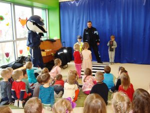 Policyjny borsuk z wizytą u przedszkolaków w Ursusie