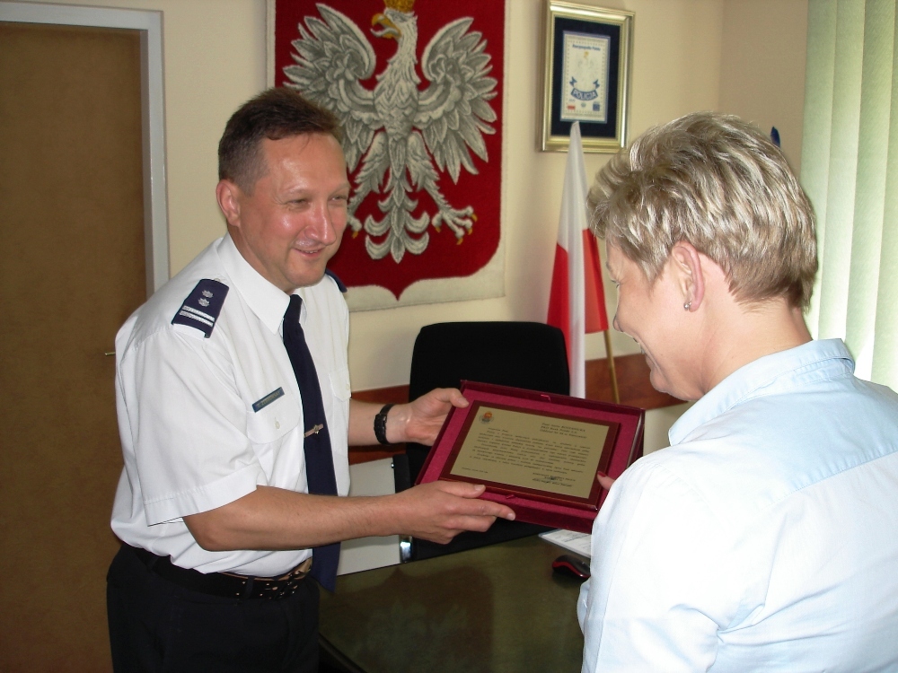 Komendant podziękował pracownikowi banku za jego postawę